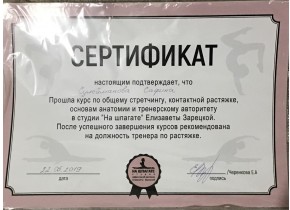 Сертификат студии эффективной растяжки «На шпагате»